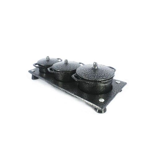 01 Kit Panelas Mini Fogão a Lenha Alumínio Fundido Craqueadas Preto
