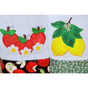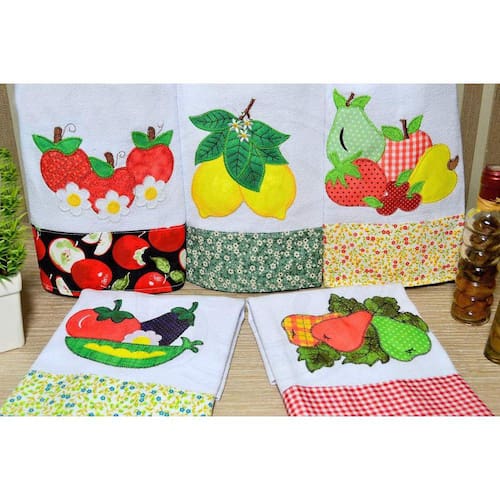 Kit Pano de Prato em Patchwork com 5 pçs - Frutas