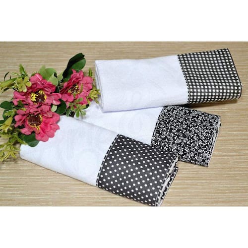 Kit Pano de Pratos 3 pçs - Branco e Preto
