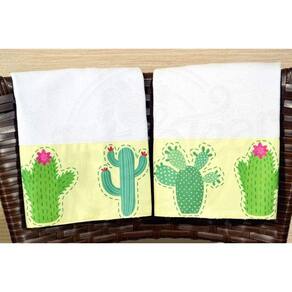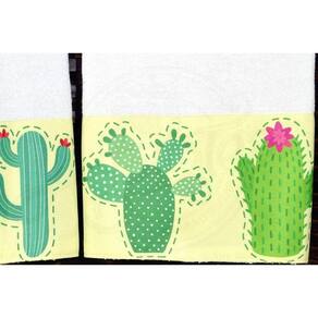 Confeccionados em tecido 100% algodão na cor branco, com barrado digital colorido, com estampas de cactos.