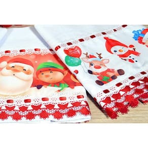 kit Pano de Pratos com Barrado 3 pçs - Natal Alegre