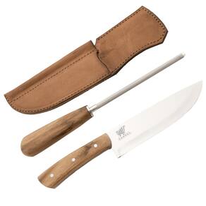 Conjunto Faca Pantanal 183mm E Chaira Com Bainha De Couro - Carmel Imports