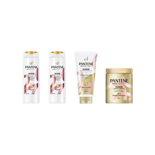 Esse kit contém: 2 Shampoo Pantene 175ml Colágeno, 1 Condicionador Pantene 150ml Colágeno e 1 Máscara de Tratamento Pantene 550ml Colágeno