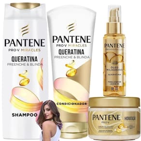 Kit pantene pro-v miracles óleo milagroso tratamento mascara Sham+con+oleo+cronograma: kit.1 Bem vindo a a loja flocus. É um prazer tê-lo a como nosso a cliente Anúncio variável. Escolha os itens que melhor lhe atender, porém para cabelos perfeitamente equilibrados, recomendamos que utilize a linha completa pantene pro-v miracles para uma reparação contra danos causados até pelo calor. Cabelos mais resistentes e brilhantes. Conteúdo do kit: 1 pantene pro-v miracles shampoo queratina - 300 ml 1 pantene pro-v miracles condicionador queratina - 250 ml 1 pantene pro-v miracles queratina oleo milagroso - 95ml 1 pantene pro-v mascara reparação de queratina hidratação ou nutrição umectante ou restauração 270ml Você já reparou o quanto você expõe o seu cabelo ao calor sol, chapinha, secador, modelador de cachos... . Apresentamos o shampoo e condicionador pantene queratina preenche & blinda, nossa fórmula pro-v miracles com queratina. O shampoo penetra no cabelo, fazendo uma limpeza e blindagem que protege, enquanto o condicionador identifica e preenche fios danificados, para alinhar e selar, facilitando o desembaraço. Use o shampoo e condicionador e a linha completa preenche & blinda para uma reparação contra danos causados até pelo calor. Cabelos mais resistentes e brilhantes. Fórmula que não pesa com queratina e pro-vitamina b5, para cabelos danificados. Ph balanceado. Óleo milagroso finalizador, uma experiência única de pantene. Nutrição, brilho imbatível e proteção em um só óleo capilar. Fios macios e brilhantes, uma fórmula que não pesa com 3x mais pro-vitamina b5. Proteção contra danos futuros. cutículas seladas e alinhadas, para um cabelo mais saudável. Precisa de uma solução hidratante para os danos a máscara capilar hidratação pantene é para você. A nova fórmula nutri-pérolas pro-v é uma infusão reparadora contra o dano do calor; contém pérolas pro-vitaminas solúveis e óleo de coco, para cabelos até 100% mais fortes e hidratados. Cabelos com frizz e pontas duplas máscara capilar nutrição pantene contém pérolas pro-vitaminas solúveis e óleo de amêndoas, para fios até 100% mais fortes e preenchidos. Solução restauradora para os danos máscara capilar restauração pantene contém pérolas pro-vitaminas solúveis e aminoácidos, para cabelos até 100% mais fortes e macios. Indicação: Cabelo danificado; Cabelo opaco; Cabelo sem brilho. Benefícios: Fórmula que não pesa; Brilho imbatível; 3x mais pro-vitamina b5; O shampoo penetra no cabelo, fazendo uma limpeza e blindagem que protege O condicionador identifica e preenche fios danificados, para alinhar e selar, facilitando o desembaraço A linha completa preenche & blinda repara o contra danos, causados até pelo calor Cabelos mais resistentes e brilhantes Contém queratina e pro-vitaminas b5, para cabelos danificados Ph balanceado Fórmula que não pesa Modo de uso: 1passo: shampoo: Aplique sobre o cabelo úmido, massageie suavemente o couro cabeludo com a ponta dos dedos em movimentos circulares Enxágue e repita se necessário. 2passo: máscara: Coloque o produto na palma da mão, Misture com os dedos até dissolver as pérolas pro-v no creme. Aplique no cabelo úmido e limpo, Deixe agir por até 30 minutos Enxágue. Repita semanalmente. 3passo: condicionador: Aplique uniformemente no cabelo úmido. Penteie com os dedos. Enxágue bem. 4passo: óleo milagroso: Aplique uma quantidade do tamanho de uma moeda nas mãos, Espalhe pelo comprimento e nas pontas, Pode ser no cabelo seco ou molhado, Sem enxágue. Agradecemos por escolher a loja flocus e por confiar em nós para cuidar da beleza dos seus cabelos. Em caso de dúvidas, favor enviar sua pergunta Flocus