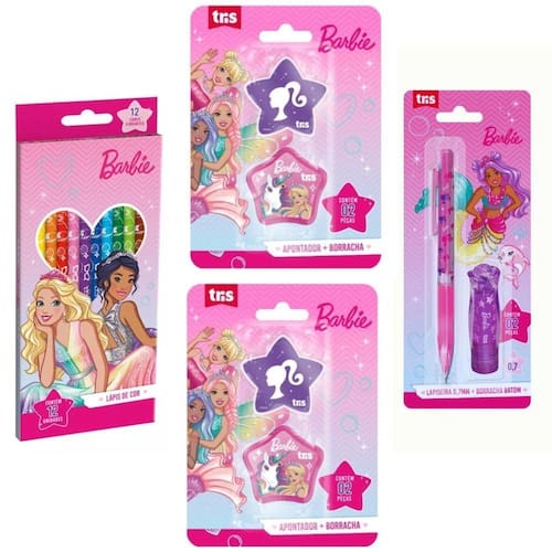 1- KIT ESCOLAR BORRACHA BATOM + LAPISEIRA 0,7MM - BARBIE - - TRIS