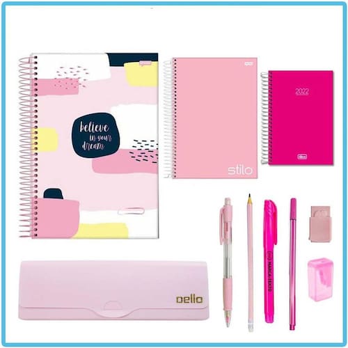Kit papelaria tons de rosa cor rosa escolar neon pastel intermediario Especificações - 1 caderno colegial espiral capa dura 1 materia 80 folhas medidas: 17,7 x 24,2 cm - estampado ou tom pastel liso, podendo variar as estampas de maneira aleatoria - 1 caderneta caderneta caderno capa dura espiral ou brochura 80 folhas medidas: 14cm x 20 cm - espiral ou brochura aleatório - 1 caneta esferográfica ou ponta fina - 1 lapiseira rosa tom pastel ou neon - aleatório - 1 borracha tom pastel ou neon - aleatório - 1 apontador com depósito 40 cm tom pastel ou neon - aleatório - 1 lápis rosa - tom pastel ou estampa de sereia ou estampa de sorvete - 1 marca texto tom pastel ou neon - aleatório - 1 agenda atual na cor rosa - 1 estojo rosa Atenção nas medidas dos caderno por favor, os itens lápis, borracha e apontador são enviados cores rosa pastel ou rosa neon de maneira aleatória Marca: Não Informado
