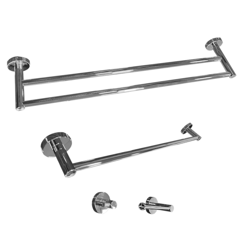 Este kit é essencial para manter a organização em ambientes como banheiros ou lavabos. Fabricado em liga de cobre, esses produtos se destacam por sua durabilidade, pois não oxida, tornando-se uma escolha ideal para regiões litorâneas. Além disso, o acabamento cromado polido garante um visual elegante e sofisticado.
