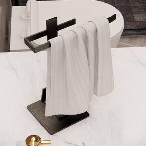 Especificações Técnicas Suporte Toalheiro Cor: Preto Dimensão Base: 13x13cm Altura: 30cm Largura da Hastes do Toalheiro: 25cm