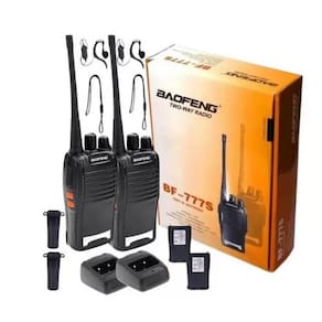 Com uma capacidade impressionante de 16 canais, este rádio permite que você se comunique rapidamente, com segurança e sem custos adicionais.Não importa onde você esteja, você nunca perderá a conexão.Confiança na Comunicação InabalávelNão há espaço para interrupções na comunicação quando se trata deste rádio. Mantenha-se conectado e confie no melhor dispositivo que faz parte da segurança de seu local.Detalhes TécnicosTudo em Um: UHF, VHF e Rádio FM, todas as opções em um único dispositivo.16 Canais: Escolha entre 16 canais para comunicação personalizada.Ampla Faixa de Comunicação: Alcance de 1 a 12km (a distância pode variar de acordo com o ambiente e obstáculos).Versatilidade de Energia: Funciona com 110/220V.Ampla Faixa de Frequência: Frequência de 400~470MHz.Entradas MIC e SP: Conectividade completa.Dimensões Compactas: Apenas 115mm x 60mm x 33mm.Leve e Portátil: Peso de apenas 150g.Especificações de EnergiaBateria de Alta Capacidade: 1500mAh para uma longa duração.Potência RF Classificada: 5W para comunicação confiável.Tensão de Operação: 3.7V / Bateria.Voltagem: 7.4V.Itens Inclusos02 Rádios Comunicadores Walkie Talkie Baofeng BF-777S.02 Baterias.02 Fontes Carregadoras.02 Antenas.02 Alças de Pulso.02 Clipes de Cinto.02 Fones de Ouvido.Linha Walk Talk 777Modelo BF-777SVoltagem 100V/240VQuantidade de rádios 2Tipos de alimentação: Bateria Li-IonQuantidade de canais: 16Alcance máximo: 6 kmÉ digital NãoCom Bluetooth NãoCom Wi-Fi NãoCom tela NãoCom teclado numérico NãoCom lanterna: SimCom função mãos livres: SimInclui pilhas: NãoHomologação Anatel Nº 129702214108Capacidade da bateria 1500 mAhFabricante BaofengTipos de tecnologia AnalógicaDuração da bateria 8 h