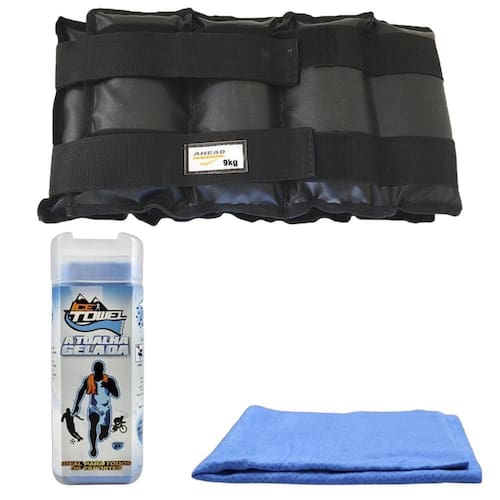 Kit caneleira de peso 9kg preta + ice towel azul p, a caneleira permite exercitar a musculatura dos membros inferiores. Utilizada também para trabalhar braços e abdômen. Indicada para condicionamento físico, treinamento, ganho de força e resistência muscular. Confeccionada em nylon 600 e ferro, tem capenil com trançado e enchimento de. Ajuste em tiras aderentes. Especificações técnicas cor: preta tamanho: único composição: nylon 600, ferro e tiras aderentes. Peso: 9kg cada dimensões: 34cm x 18cm x18cm garantia: 03 meses conteúdo da embalagem: 1 par de caneleira + ice towel imagens meramente ilustrativas