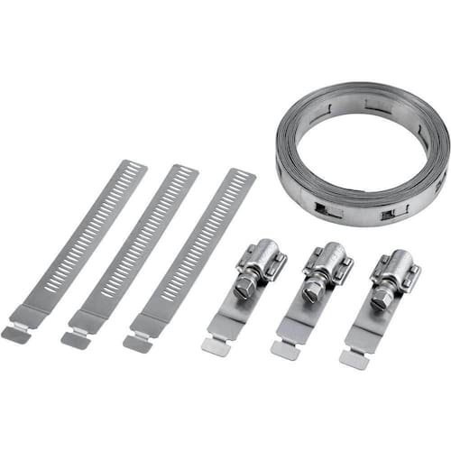 Conteúdo da embalagem: 1 kit composto por: 1 rolo com 3 metros de abraçadeira, 3 fechos serrilhados e 3 fixadores com parafuso.