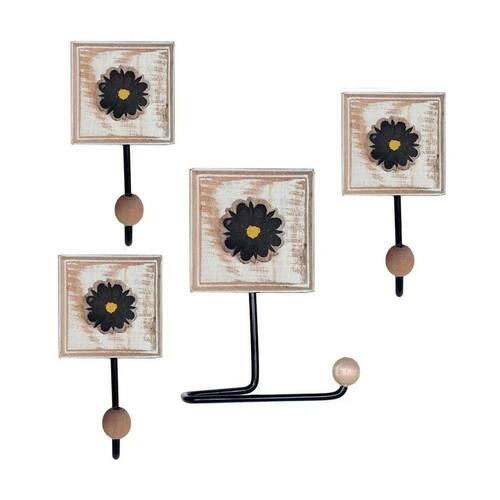 Kit Para Banheiro Com 3 Toalheiros E 1 Porta Papel Higiênico Rustico Flor Branca Cor Preto