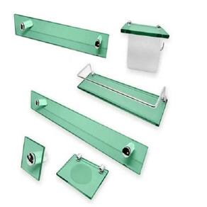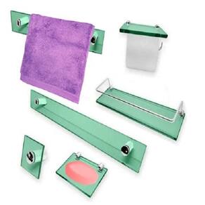 - 1 Saboneteira reta 10x12 cm Verde - 1 Porta shampoo 10x30 cm Verde - 1 Porta toalha de banho 8x60 cm Verde - 1 Porta toalha de rosto 8x30 cm Verde - 1 Cabide 10x10 cm Verde - 1 Papeleira 12x14 cm c suporte para celular Verde