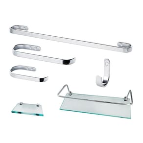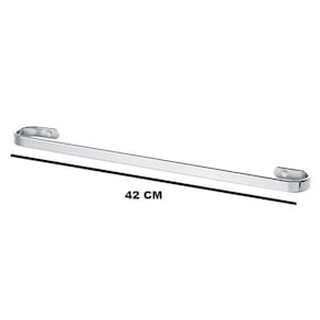 Dimensões do produto Porta toalha de rosto 17 cm Porta toalha de corpo 42 cm Cabide 7 cm Papeleira 13 cm Porta shampoo de vidro com proteção 10 x 30 cm Saboneteira reta de vidro 10x12 cm