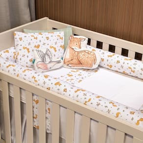 Kit Para Berço Jogo De Lençol Com Rolinhos 100% Algodão 7 Peças - Raposinha