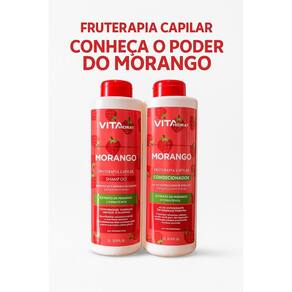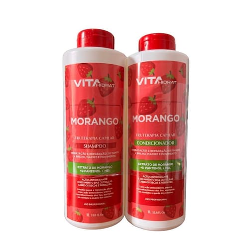 Kit para cabelos secos e rebeldes e reparação de danos morango vitahidrat 1l O shampoo fruterapia morango vitahidrat entrega o cuidado que você necessita para tratar os cabelos. Possui ação antioxidante que confere aos fios a prevenção do envelhecimento precoce, auxiliando no combate a queda. Os ativos contidos em sua fórmula são essenciais para um tratamento eficiente da raiz as pontas.