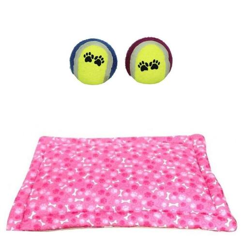 Kit Para Cães E Gatos - 1 Colchonete M E 1 Bola Tênis Rosa