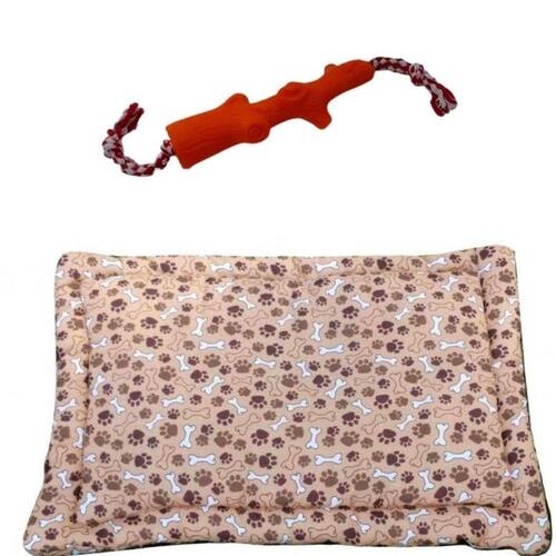 O kit contém: - 1 colchonete marrom g; - 1 brinquedo de corda graveto;