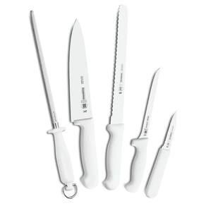 Kit Para Chefs Com Facas Tramontina Com Laminas Em Aço Inox E Cabos De Polipropileno Branco 6 Peças Kit para Chefs com Facas Tramontina com Lâminas em Aço Inox e Cabos de Polipropileno Branco 6 Peças Se você quer dar um upgrade no preparo de seus pratos, o Kit para Chefs com Facas Tramontina com Lâminas em Aço Inox e Cabos de Polipropileno Branco 6 Peças é a escolha ideal. As facas do kit contam com lâminas em aço inox e cabos em polipropileno injetado na cor branca, que garantem muito mais resistência e durabilidade à peça e a chaira possui haste em aço carbono revestida com cromo-duro, garantindo uma performance de alto desempenho na hora da afiação. Para dar ainda mais estilo ao seu conjunto, as peças vêm em um belo estojo de nylon. Com esse kit, fica fácil ser um grande Chef!