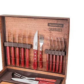Com o Kit para Churrasco Tramontina com Lâminas em Aço Inox e Cabos em Madeira Polywood com Caixa de Papelão 15 Peças, você terá o jogo ideal para deixar seu churrasco ainda mais prático e funcional!
