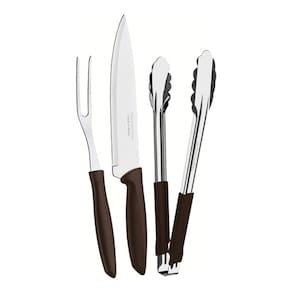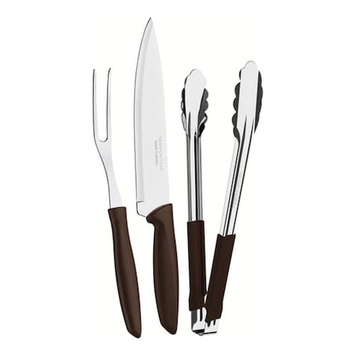 O Kit para Churrasco Tramontina Plenus com lâminas em Aço Inox e cabos de Polipropileno Marrom 3 Peças, é perfeito para você recepcionar sua família para aquela confraternização do fim de semana. Produzidas com lâminas em aço inox, as peças que compõem o kit oferecem alta resistência e durabilidade. Elas levam mais beleza à sua mesa e tem um manuseio leve e confortável, devido aos cabos de polipropileno na cor marrom. Além disso, são práticas e podem ser lavadas na máquina de lavar louças. Qualidade e eficiência você só encontra com os produtos Tramontina!