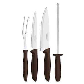 O kit para churrasco Tramontina Plenus com lâminas em aço inox e cabos de polipropileno marrom 4 peças é perfeito para servir à sua família um saboroso churrasco. Com lâminas fabricadas em aço inox, as peças oferecem mais qualidade e resistência, pois são submetidas a um tratamento térmico. E a chaira conta com haste de aço carbono cromado para manter suas facas sempre com um bom fio de corte. Além de deixar os ambientes mais bonitos, devido aos cabos em polipropileno na cor marrom, elas ainda são de fácil e leve manuseio. A Tramontina tem tudo para deixar seus momentos muito mais gostosos!