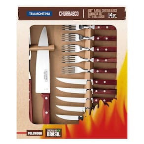 Para você fazer bonito em todos os churrasco é essencial contar com o Kit para Churrasco Tramontina em Aço Inox com Cabo Vermelho Polywood 14 Peças. Um kit da linha Churrasco completo que leva qualidade e sofisticação para qualquer momento. As peças são produzidas com lâminas em aço inox, altamente durável, com cabos de madeira tratada Polywood, que são resistente à impactos e altas temperaturas. Criada para você tornar o ritual do churrasco ainda melhor.
