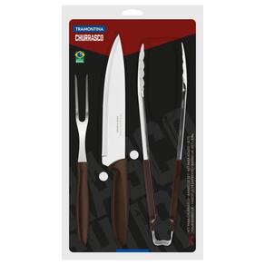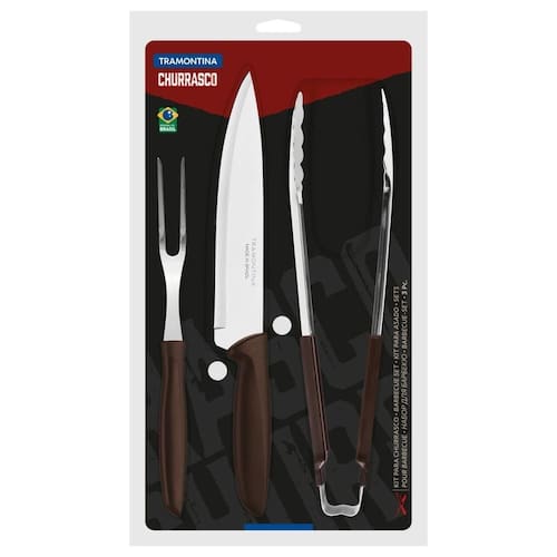 Kit para Churrasco Tramontina Plenus com Lâminas em Aço Inox e Cabos de Polipropileno Marrom 3 Peças