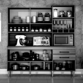 Se procura uma cozinha que possui todos os compartimentos que precisa para deixar utensílios, louças e alimentos organizados e de fácil alcance para a rotina, o Kit Cozinha Ébano é o móvel ideal. Enquanto os nichos internos recebem os itens maiores, as gavetas acomodam muito bem os talheres, panos de prato ou objetos menores que ainda precisam ficar por perto. Tudo isso sem que nada fique fora do lugar e atrapalhe a harmonia do cômodo. Ótima para deixar o espaço com uma cara leve e muito mais convidativa!
