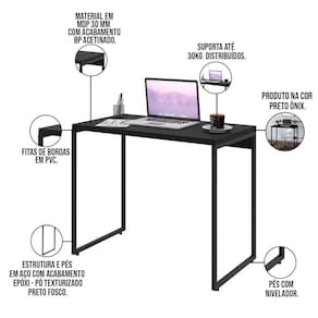 Com o Kit Para Escritório Estante Areta 3 Prateleiras Mesa Industrial Aspen 90cm C01 Onix - Lyam Decor, o conceito industrial ficará evidente no seu ambiente, tornando o mesmo muito mais moderno, sofisticado e organizado, garantindo isso com 03 prateleiras que deixam tudo prático e funcional. Uma característica muito forte dos móveis industriais é a união do tubular de estrutura exposta com a madeira, que dão todo o charme para agregar no estilo que está entre os mais buscados no ramo de arquitetura e decoração.