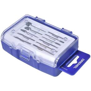 Kit Para Esculpir E Gravar Com 11 Peças - 26150729ab000 - Dremel Kit para Esculpir e Gravar com 11 Peças - 26150729AB000 - DREMEL Descrição: Jogo para Mini Retífica Esculpir e Gravar da marca Dremel é composto por 11 acessórios, sendo um conjunto ideal para incrementar, potencializar e aumentar as possibilidades de tarefas com a sua mini retífica, sendo estes adequados para esculpir, gravar, esmerilhar e afiar com excelente qualidade de acabamento e precisão. Além de diferentes operações podem ser utilizadas em diferente materiais como madeira, PVC, metal, pedras e vidro.