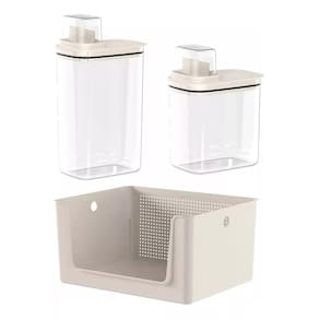 O Kit Para Lavanderia Flow é a escolha perfeita para quem busca otimizar o espaço e a organização em sua lavanderia. Composto por um cesto organizador de 16 litros e dois dispensers, este conjunto oferece praticidade e eficiência para o dia a dia. Cada item foi projetado para proporcionar uma experiência fluida e organizada, mantendo seus produtos de limpeza e roupas sempre em ordem.