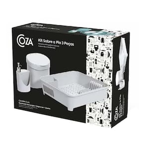 Elegância até na hora de deixar a louça secando com o Escorredor de Louça com porta talher embutido, acompanhado do Dispenser com espaço para esponja e da Lixeira. Ideal para espaços compactos, otimiza a organização da pia com uma aparência simples e confortável.
