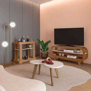 Certamente, aqui está um móvel diferente e inovador! Racks para TVs até 42 polegadas. Estilo moderno com curvas: Design arrojado que adiciona um toque contemporâneo à qualquer sala de estar. Funcional e estiloso: Combinação perfeita entre forma e função para atender às necessidades modernas. Prateleira para organização: Ideal para exibir objetos decorativos ou dispositivos eletrônicos adicionais. Espaço inferior amplo: Perfeito para organizar equipamentos, caixas ou acessórios. Atemporalidade e versatilidade: Adapta-se facilmente a diferentes estilos de decoração. Qualidade e durabilidade: Fabricado com materiais resistentes, garantindo longevidade ao móvel. Este rack é a solução perfeita para uma sala contemporânea, unindo beleza, uma aparência leve e muito espaço de armazenamento! Acabamento: Pintura UV Altura do Conjunto: 80 cm Ambiente: null Ambiente Principal: Sala de Estar Cor: Cinamomo/Off White Informação Complementar: 1x Mesa de Centro 100% MDF Design Orgânica Off White/Carvalho Largura: 91 cm Altura: 44,5 cm Peso: 8,3 kg Profundidade: 55 cm Necessita Montagem: Sim