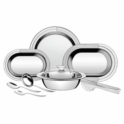 O incrível Kit para Servir Tramontina Ciclo em Aço Inox vai surpreender seus convidados. Peças totalmente feitas de aço inox, não soltam nenhum resíduo nos alimentos, mantendo-os saudáveis. Altamente duráveis, mantêm suas características, preservando a beleza, a higiene e a durabilidade do material. Ideal para servir à mesa, possui acabamento em brilho, com detalhes em alto relevo nas bordas. Com tampa de vidro mantém os alimentos quentes por mais tempo. A linha Ciclo é praticidade e qualidade para o seu dia a dia.