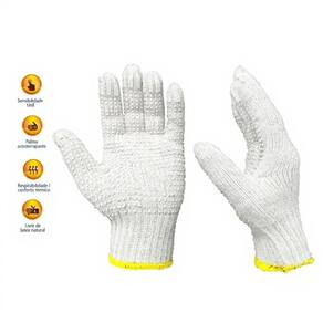 Luva de proteção individual (EPI) tricotada em algodão, reversível e com punho elástico, ideal para trabalhadores da construção civil, como pedreiros e azulejistas. Oferece conforto, mobilidade e tato, sendo indicada para proteção contra sujeira, frio e riscos leves. Aplicações incluem construção civil, logística, colheita, jardinagem e indústria automotiva.
