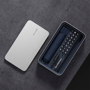 Características: - Kit de chaves elétrico Hoto com 25 bits com extensor ideal para reparos e montagens do dia a dia - Sistema de parada instantânea inteligente que evita danos aos parafusos e lesões no punho por rotações excessivas - Colar rotacionável para seleção dos 3 níveis de torque de forma rápida e prática - Bateria de 1500mAh podendo apertar mais de 800 parafusos em carga máxima - Acompanha estojo retangular para armazenamento dos bits e da chave - Lanterna LED integrada em todo entorno do bit para não projetar sombras