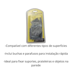O Kit Parafuso com Bucha M8 com 20 Peças é a solução completa para fixações seguras e duradouras em diferentes tipos de superfícies, como alvenaria, concreto e drywall. As buchas garantem aderência firme e estabilidade, enquanto os parafusos em aço de alta resistência proporcionam fixação confiável e acabamento . Ideal para instalação de prateleiras, suportes, quadros e objetos decorativos, o kit oferece facilidade de aplicação e versatilidade tanto para uso doméstico quanto . Um conjunto essencial para quem busca qualidade, praticidade e segurança em cada fixação. Especificações: - Marca: Bomvink; - Modelo: 5304; - Quantidade: 20; - Peso: 67g; - Dimensões: 8mm; - Material: Aço, Plástico; - Aplicação: Fixações em paredes de alvenaria, concreto, tijolo ou gesso; - Recomendações: Evite fontes de calor ou exposição solar direta, para não ressecar o plástico; - : 3 meses 90 dias . Conteúdo da embalagem: -20 Parafusos; -20 Buchas.