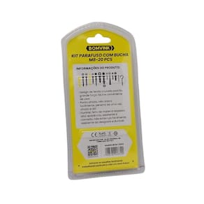 O Kit Parafuso com Bucha M8 com 20 Peças é a solução completa para fixações seguras e duradouras em diferentes tipos de superfícies, como alvenaria, concreto e drywall. As buchas garantem aderência firme e estabilidade, enquanto os parafusos em aço de alta resistência proporcionam fixação confiável e acabamento . Ideal para instalação de prateleiras, suportes, quadros e objetos decorativos, o kit oferece facilidade de aplicação e versatilidade tanto para uso doméstico quanto . Um conjunto essencial para quem busca qualidade, praticidade e segurança em cada fixação. Especificações: - Marca: Bomvink; - Modelo: 5304; - Quantidade: 20; - Peso: 67g; - Dimensões: 8mm; - Material: Aço, Plástico; - Aplicação: Fixações em paredes de alvenaria, concreto, tijolo ou gesso; - Recomendações: Evite fontes de calor ou exposição solar direta, para não ressecar o plástico; - : 3 meses 90 dias . Conteúdo da embalagem: -20 Parafusos; -20 Buchas.