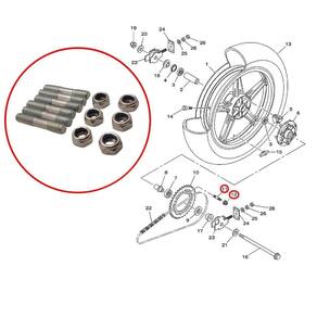 - O Kit 6 Parafusos Prisioneiro da Coroa Com Porca é um conjunto de peças que serve para fixar a coroa da moto.