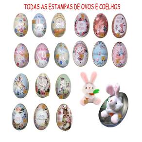 Kit Páscoa 2 Ovos de Metal Colecionável + 2 Coelhos Pelúcia + 2 Sacolas