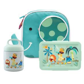 Principais características: Kit completo com Mochila Térmica, Garrafa Pote 300ml e Box de Refeição Mochila Térmica Elefante Ollie com isolamento para manter a temperatura dos alimentos Garrafa Pote com alça prática e tampa segura que evita vazamentos Box de Refeição com compartimentos para separar alimentos Materiais resistentes livres de BPA e ftalatos Compatíveis com micro-ondas, freezer e lava-louças Fáceis de higienizar e transportar Design divertido e colorido Jungle Verde e Elefante Ollie Verde