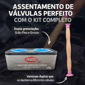 Kit para Esmerilhar Válvulas com Pasta Abrasiva e Aplicador com Ventosas Esse kit completo é ideal para o assentamento preciso de válvulas em motores automotivos, oferecendo praticidade e acabamento em serviços de manutenção. A pasta abrasiva conta com dupla granulação - grão grosso para desbaste inicial e grão fino para o acabamento final. O aplicador possui ventosas em ambas as extremidades, adaptando-se a diferentes tamanhos de válvulas e facilitando o trabalho manual. Benefícios: Assentamento de válvulas com precisão Pasta com grão grosso e fino no mesmo recipiente Aplicador com ventosas duplas para melhor aderência Ideal para motores de carros, motos, tratores e afins Fácil manuseio e aplicação, mesmo para uso doméstico Conteúdo do Kit: 1 pasta abrasiva para esmerilhamento de válvulas dupla granulação 1 aplicador manual com ventosas Marca: Não Informado Ean: 7895184784289