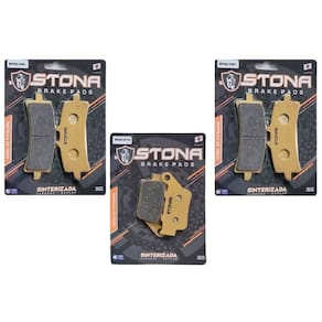 KIT COMPLETO PASTILHAS STONA SINTERIZADA KEVLAR E CARBONO Aplicação: Ktm Duke 690R Modelo R 2014 até 2017 Itens inclusos: 03 pares de pastilhas para 3 discos de freio Produzida através do processo de sinterização originado pela composição de pós metálicos Entre eles cobre aço, Bronze, Cerâmica, Grafite, CARBONO E KEVLAR compactado por pressão Submetido a temperatura elevada ligeiramente menores que sua temperatura de fusão Este processo cria uma peça única e sólida, Formando um bloco homogêneo da massa, Aplicado a uma placa de aço carbono. Desenvolvida por engenheiros japoneses e fabricado na China. -Excelente desempenho. -Maior tolerancia as altas temperaturas em frenagens longas e curtas. -Aquecimento rápido e frenagem precisa e mais segura. -Maior segurança em dias de chuva -Baixo ou nenhum ruido -Oferece maior durabilidade. -Efeciencia e sensibilidade durante a frenagem. -Menor desgaste do conjunto pastilhas e discos. -Economia e menor esforço para o sistema de freio. -Ref Dianteira AP Racing 441 - PTZ900 - 90-FM447 / Traseira Ref PTZ213GT - F124 90-FM208-2 Codigo do produto: 2x SKU 1503 - PASTILHA DIANTEIRA SINTER F051 - 02 CARTELAS 1x SKU 1141 - PASTILHA TRASEIRA SINTER R124 Com duvidas? Nos escreva que te responderemos o mais rápido possível! Box Racing - Venda Autorizada Stona Brake Pads