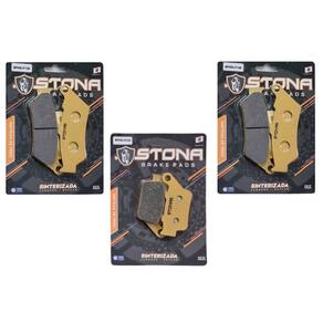 KIT COMPLETO PASTILHAS STONA SINTERIZADA KEVLAR E CARBONO PARA 03 DISCOS APLICAÇÃOAprilia: 660 Tuareg 2022-2023INDIAN: 1200 Rogue 2022-2023 Itens inclusos: 03 pares de pastilhas Produzida através do processo de sinterização originado pela composição de pós metálicosEntre eles cobre aço, Bronze, Cerâmica, Grafite, CARBONO E KEVLAR compactado por pressãoSubmetido a temperatura elevada ligeiramente menores que sua temperatura de fusãoEste processo cria uma peça única e sólida,Formando um bloco homogêneo da massa, Aplicado a uma placa de aço carbono.Desenvolvida por engenheiros japoneses e fabricado na China.-Ref DIanteira PTZ209 Ap Racing 274 - Traseira PTZ213 Ap Racing 275 Codigo do produto:2x SKU 1139 PASTILHA DIANTEIRA SINTER F126 02 CARTELAS1x SKU 1141 PASTILHA TRASEIRA SINTER R124 Com duvidas? Nos escreva que te responderemos o mais rápido possível!Box Racing - Venda Autorizada Stona Brake Pads