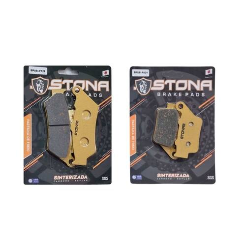 KIT COMPLETO PASTILHAS STONA SINTERIZADA KEVLAR E CARBONO PARA 02 DISCOS Aplicação: ROYAL ENFIELD -535 Continental GT 2014 até 2017 -650 Continental GT 2020 até 2023 -650 Interceptor 2019 até 2023 Itens inclusos: 02 pares de pastilhas Produzida através do processo de sinterização originado pela composição de pós metálicos Entre eles cobre aço, Bronze, Cerâmica, Grafite, CARBONO E KEVLAR compactado por pressão Submetido a temperatura elevada ligeiramente menores que sua temperatura de fusão Este processo cria uma peça única e sólida, Formando um bloco homogêneo da massa, Aplicado a uma placa de aço carbono. Desenvolvida por engenheiros japoneses e fabricado na China. -Ref DIanteira PTZ209 Ap Racing 274 - Traseira PTZ213 Ap Racing 275 Codigo do produto: 1x SKU 1139 PASTILHA DIANTEIRA SINTER F126 1x SKU 1141 PASTILHA TRASEIRA SINTER R124 Com duvidas? Nos escreva que te responderemos o mais rápido possível! Box Racing - Venda Autorizada Stona Brake Pads