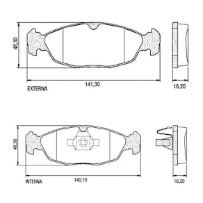 4 Pastilhas de Freio A 51,60 mm X L 141,10 mm X P 16,20 mm