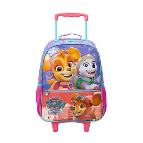 Design exclusivo: Estampa da Skye, a cachorrinha piloto da Patrulha Canina, com detalhes encantadores. Fechamento por zíper: Facilita o acesso aos compartimentos. Alças de mão e puxador: Conforto e versatilidade para carregar da forma que preferir. Rodas resistentes: Facilitam o transporte e garantem durabilidade. Dois compartimentos: Espaço amplo para organizar livros, cadernos e outros materiais. Bolsos laterais: Ideal para guardar garrafinhas ou outros itens pequenos.