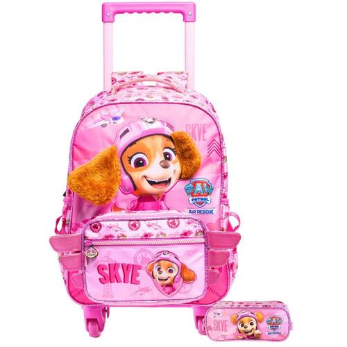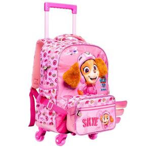 Mochila de rodinha: Frente em poliéster com orelhas em pelúcia aplicada; Puxadores emborrachados personalizados; Alça de mão acolchoada; Alças de costas acolchoada e regulavel estampadas; Piping com glitter; Zíper tratorado; Acompanha bolsa lateral removível com asas; Carrinho com hastes achatadas e rodinhas em gel; Dois bolsos laterais para garrafa; Material: poliéster Dimensões: Largura: 30cm Altura: 40cm Comprimento: 15cm