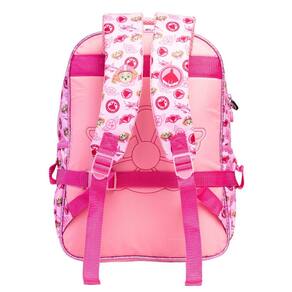 Mochila de costas: Frente em poliéster com orelhas em pelúcia aplicada; Puxadores emborrachados personalizados; Alça de mão acolchoada; Alças de costas acolchoada e regulavel estampadas; Piping com glitter; Zíper tratorado; Acompanha bolsa lateral removível com asas; Dois bolsos laterais para garrafa; Material: poliéster Dimensões: Largura: 30cm Altura: 40cm Comprimento: 15cm